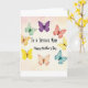 This card features the message “TO A SPECIAL MOM Happy Mother’s Day” centered on the front, with the top line in darker lettering and “Happy Mother’s Day” placed just below in a softer, lighter tone. Eight delicate, butterfly-like figures drift around the words in a loose circle, as if drawn in by affection ❤️. Their semi-transparent wings look like layered watercolor, tinted mint green, deep purple, coral, sunny yellow, warm peach, and calm teal, each paired with a darker body that adds contrast. The way they hover close together suggests a gentle closeness, like friends gathering around someone they adore. Behind them, the background is a soft wash that fades from creamy, sunlit yellow near the bottom into pale rosy pink toward the top. The airy gradient leaves plenty of open space so the lettering stands out without feeling crowded. Fine brushlike details appear inside each wing, with tiny variations in color that resemble soft petals 🌼. The butterflies form an uneven ring around the centered text, floating over the yellow-to-rose watercolor blend.