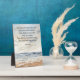 Bible verse art sign with stand features the scripture passage from Isaiah 40:31 printed above a beautiful coastal ocean scene. Home decor sign is a lovely way to display God's word in your home. Bible verse reads: "But those who wait on the Lord shall renew their strength; they shall mount up with wings like eagles, they shall run and not be weary, they shall walk and not faint." From Isaiah 40:31. Sign makes a lovely wedding gift, housewarming gift, or all occasion gift for Christian friends.