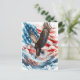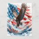 With bold wings stretched wide, a bald eagle carries the American flag above vivid mountain peaks. The landscape glows in red, white, and blue, honoring the heart of the homeland. Pencil sketch lines and soft paint textures merge to form a realistic and inspiring visual. “Proud to be an American” crowns the design with pride, courage, and clarity.