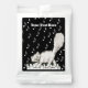 These packets of drink mixes in your choice of flavours have a a black and white image of a white winking cat walking on piano keys on a black background with white musical notes Customise your text with the template.