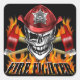 Winking Firefighter Skull and flaming Axes Square Sticker