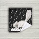 This wash cloth is black with white music notes and a fluffy white cat who is winking as he walks across piano keys.