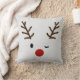 Winking Reindeer Plaid Christmas Throw Pillow