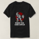 My 11 yo wore adult XL (5’7” 165#). The 8yo is small framed. She wore adult small and tied it in the back. Grandma wore adult large with long sleeve shirt underneath. Tall girl adult medium. Dark haired male adult large. Good quality dark Heather gray, Gildan brand shirt. -it was next up from basic choice and cost about $20 per shirt. Not too thick or thin. Washed and dried well, no major shrinkage. Not see-through. Can wear a bra under it fine. Screen print is just as shown and well done, front and back.