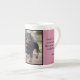 Bone china cup with photo and text.