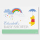 It's a Boy! This super cute Baby Shower banner features Pooh with a blue umbrella along with rainbows and clouds. Personalize by adding your Baby Shower details!