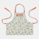 Great color and even though I ordered the kid size, it covers well enough to use during the holidays. I am not a big woman and prefer a shorter apron. I stand 5"6" and the length of the garment goes to mid-thigh. The tie straps fit well at my waist and even though there is no neck strap adjustment, the opening is plenty big enough. I am happy with the size and fit. I am sharing my apron with my 10 year old grandson, too! The color is vibrant and looks good, as shown on the website. The stitching looks strong and reinforced. Photographed is front side and back side of the apron, reinforced straps and coloring. My phone camera may not be the best at showing the details.