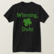It's one of the most popular Winning, Duh! T-shirts! Featuring a lucky four-leaf clover and green text, this funny winning shirt is sure to bring luck and smiles. Choose this design on many shirt styles and colors, and grab yours today!