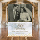 Personalize with your favorite wedding photo and your special 50th golden wedding anniversary celebration details in chic gold typography on a winter snowflakes background. Designed by Thisisnotme©