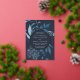 Our Winter Azure wedding invitation surrounds your wedding day details with a circular border of vibrant watercolor foliage in wintry colors. A modern yet organic choice for winter or spring weddings featuring intricately painted botanical elements. Colorway: Winter Azure, a medley of frozen blues on a navy background.