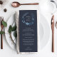 Our winter chic wedding menu features your starter courses, entrees and desserts in elegant lettering, with your names and wedding date encircled by a wintry blue watercolor botanical wreath. Coordinates with our Winter Azure wedding collection. Use the template fields to add your menu information, and then use the Design Tool to reposition elements if needed.