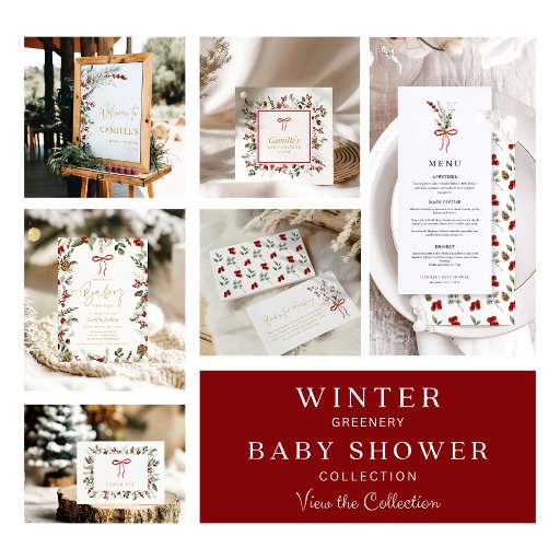 Add a seasonal touch to your winter baby shower with our "How Big is Mommy's Belly?" game card. Featuring winter greenery and red holly, it's a fun and elegant way to engage guests in your celebration.