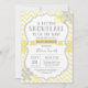 Winter Baby Shower invitation. Yellow Snowflake. Boy or Girl Baby Shower Invitation. Winter Holiday Baby Shower Invite. Yellow and Gray Silver Snowflakes. White Background. For further customization, please click the "Customize it" button and use our design tool to modify this template.