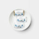 Polar bear arctic winter we can bearly wait baby shower thank you favors personalized mini chocolate mini Hershey's, watercolor cute polar teddy bear wearing a blue scarf sitting on ice rock snowy pines winter themed baby shower thank you candy favors edible favors