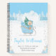 This cute and fun notebook features an adorable bear in a blue sleigh surrounded by snow, mountains and pine trees. Beautiful faux glitter flower arrangements and silver confetti add a festive touch. The text combines handwritten script and sans serif fonts for a stylish and modern look. It can be personalized with your baby's birth stats, such as name, size, date and time of birth, or if you would like to give it as a shower gift you are able to edit and remove text.