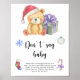 "There's a Beary Sweet baby on the way". Celebrate with this teddy bear themed baby shower party! Watercolor cute teddy bear with christmas gift, in santa hat. On the reverse side of the card are holiday christmas pattern (candy cane, christmas tree ball toy, christmas socks). Matching items available.