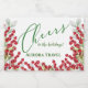 Watercolor winter berries, leaves and snow flurries accent these mini sparkling wine bottle labels. Personalize with your name and other details in chic lettering in ANY COLOR fonts for any occasion and perfect for Christmas or holiday favors, business gifts, even winter wedding party favors. CHEERS is available in 4 colors.