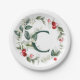 This set of 20 small 1.5" round monogram envelope seals feature a bright red and forest green winter berry wreath with a decorative sage green monogram initial.