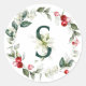 This set of 20 small 1.5" round monogram envelope seals feature a bright red and forest green winter berry wreath with a decorative sage green monogram initial.