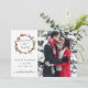 This wedding save the date card features a winter themed wreath of red berries and leaves with the event details in modern font. For more advanced customization of this design, Please click the "Customize further" link.