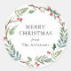 Custom-designed Christmas stickers and labels featuring festive watercolor Christmas wreath with winter greenery and red berries.