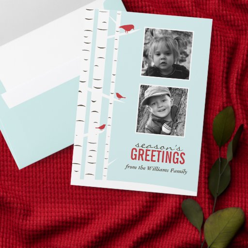 Winter Birch Trees and Birds Season's Greetings Holiday Card