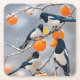 Enjoy a warm cup of tea, or cozy book nook with this sweet gathering of Magpies & Persimmons in winter snow.