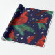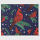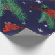 Winter birds - cardinals on fir-tree branches with wrapping paper