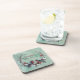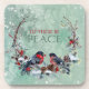 A beautiful branch wreath is decorated with red berries, twine bows, pine cones and winter birds on the front of these elegant Holiday coasters. The wreath image is placed on a pretty sage green bokeh style background, with soft snowflakes falling all around. At the center is your custom text in red and green.