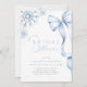 Set the tone for a magical celebration with this Winter Blue Bow Bridal Shower Invitation. Designed with soft blue watercolor ribbons and sparkling snowflakes, this elegant winter theme is perfect for honoring the bride-to-be. A chic and timeless choice for a cold-season bridal shower.