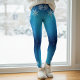 Winter blue snowy Christmas leggings for women. Ombre shades of blue with big and small snowflakes. Great for the winter season or as a cute pair of Christmas leggings.