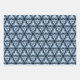 A set of three decorative wrapping paper sheets in a soft winter solid blue, a night blue swirl pattern, and a snowy blue swirl print. The prints feature intricate swirl patterns in contrasting shades for a sophisticated gift giving presentation.