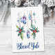 Send the perfect greeting this holiday season with a bright and colorful watercolor Winter Boho Blue Crystals and Holly "Blessed Yule" Solstice design featuring your custom text in an easy to edit template.