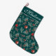 Add timeless charm to your mantel with this elegant personalized Christmas stocking featuring hand-painted winter botanicals, pine sprigs, berries, and dainty coquette bows on a deep evergreen background. The script name detail adds a refined, custom touch, while the festive red and green palette brings cozy holiday warmth to your décor. Perfect for pairing with matching wrapping paper, tags, and ornaments from the Winter Botanicals Collection.