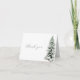 The AMIHAN winter thank you card design features a classic design with a white background and watercolor pine tree covered in snow, paired with a handwritten script font in a dark forest green.