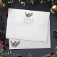 Order these customized envelopes with printed return address to match the winter Bullfinch Christmas cards, featuring a watercolor bullfinch perched on pine greenery, holly leaves, and red berries.