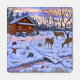 Winter Cabin Deer In Snow Christmas Scene Coaster Set