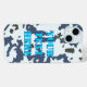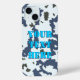 A white, blue and green, digital-style, winter camouflage pattern. Customize by adding your own text.