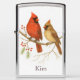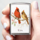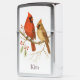 This Zippo lighter can be personalized with your choice of text. The design features a digital color pencil drawing of winter cardinals on a snow-covered branch. It would make a thoughtful gift for any bird enthusiast. Ai image designed by Susang6