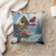 Winter Cardinal on a Festive Birdhouse Throw Pillow