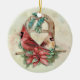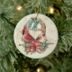 Winter Cardinals Pair with Poinsettia Ceramic Ornament
