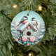 Bring the magic of winter to your holiday décor with this delightful ornament featuring two fluffy chickadees perched on a snow-covered birdhouse, surrounded by festive peppermint candies and frosted greenery. The serene snowy backdrop and pastel hues create a whimsical and cozy vibe, perfect for nature enthusiasts and bird lovers alike. Whether adorning your Christmas tree or given as a thoughtful gift, this ornament celebrates the peaceful beauty of winter with a touch of holiday cheer.