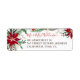 A chic and modern green, red, winter Christmas return address featuring a pretty hand painted red poinsettia , green branches with white snow, perfect for winter holidays, Christmas, or weddings.