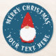 Winter Christmas gnome custom paper coasters. Create your own Holiday party supplies and accessories. Funny troll cartoon design with red hat and long beard. Fun table decorations for dinner party, celebration and more. Add your own greeting and name. Round shape.