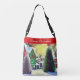 Add this festive crossbody bag to your wardrobe featuring a winter village scene during Christmas time. The text on this crossbody bag can be customized with your own or left as is.
