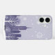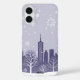 The design features a beautiful city skyline with white snowflakes falling on a luxurious lavender gray background. City skyscrapers and winter trees blend harmoniously to create a dreamy atmosphere, while a delicate snowflake pattern adds a touch of winter romance.