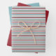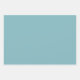 Set of three conveniently pre-cut winter colors wrapping sheets in aqua, maroon, green and beige.