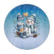 Charming winter illustration with a smiling snowman, striped scarf, blue mug of cocoa, boots and pine accents. Soft blue palette, warm accents, and cozy season feel!