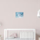 A poster with an image of a majestic deer in wintertime. An icy blue filtered background gives this photo a cold winter look with a magical feel. This proud, noble animal stands on a hill with wintery pine trees in the background.
