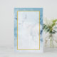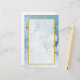Stationery with an image of a majestic deer in wintertime. An icy blue filtered background gives this photo a cold winter look with a magical feel. This proud, noble animal stands on a hill with wintery pine trees off in the distance. A semi-transparent overlay with a gold colored border is layered over top for easy legible writing.